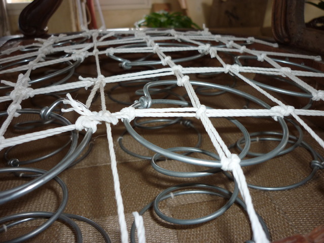 - La remise en place de la garniture et du Jaconas : le tapissier recouvre le fond (dessous) du siège d'un Jaconas afin de masquer le sanglage peu esthétique et d'éviter l'infiltration de la poussière.