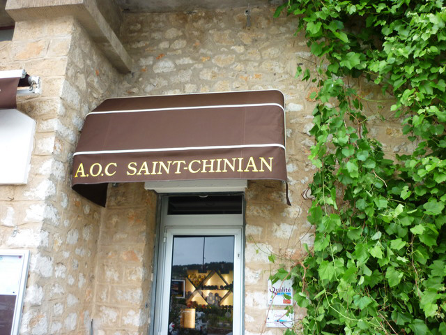 Remplacement des toiles de stores (à banne et corbeille), conception et mise en place de lettrages thermocollés Pour la Cave Coopérative des Vignerons de Saint-Chinian (34)
