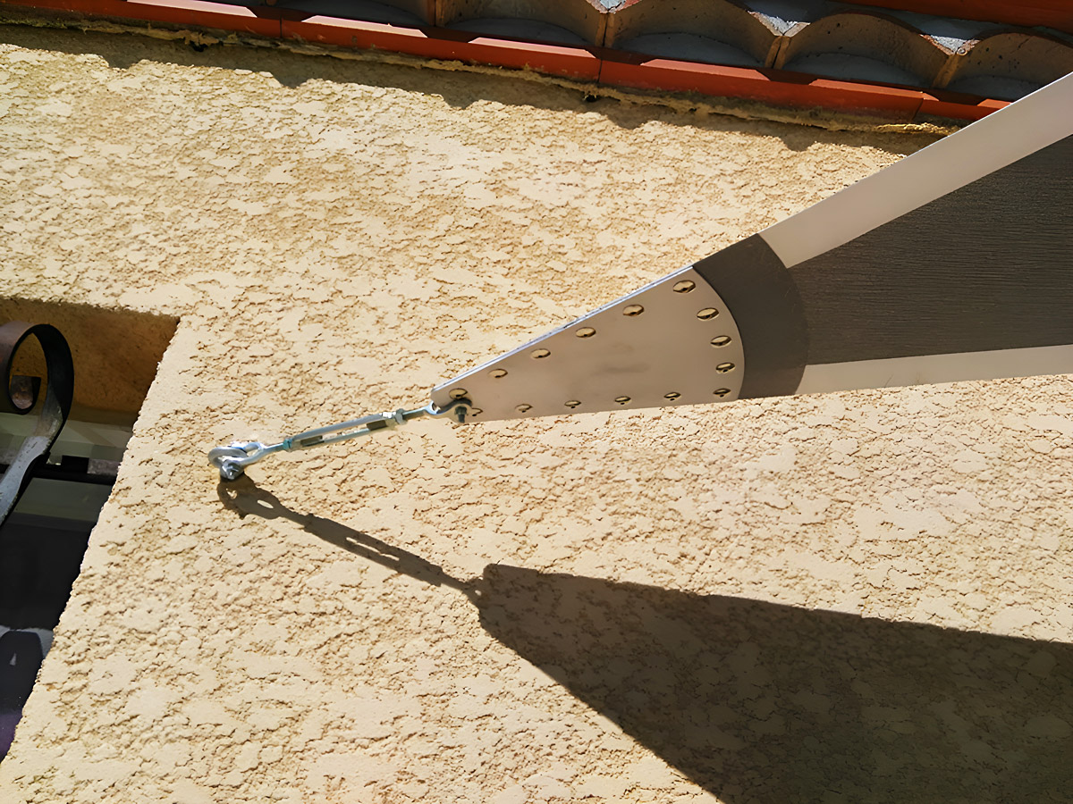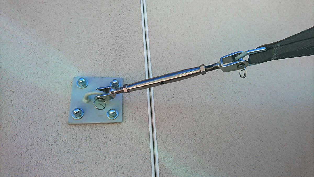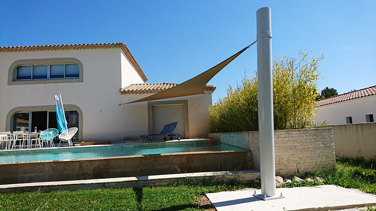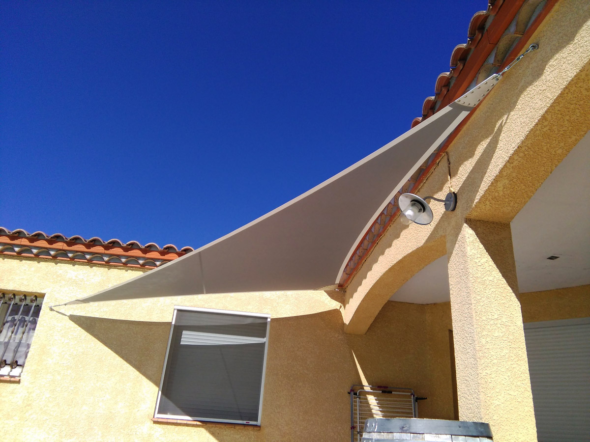 Une voile d’environ 18 m² supporte des tensions de l’ordre de 300 kg par pointe et ces tensions peuvent doubler en fonction de l’implantation et des conditions météorologiques. Le recours à un installateur professionnel est essentiel, car nous saurons prendre en compte tous les paramètres. Ainsi, la voile correctement installée et tendue garantira le meilleur effet visuel, et ne subira pas de vieillissement accéléré par battement au vent ou de dégradation à cause des poches d’eau.